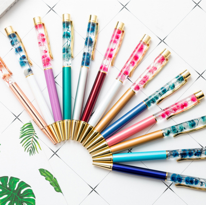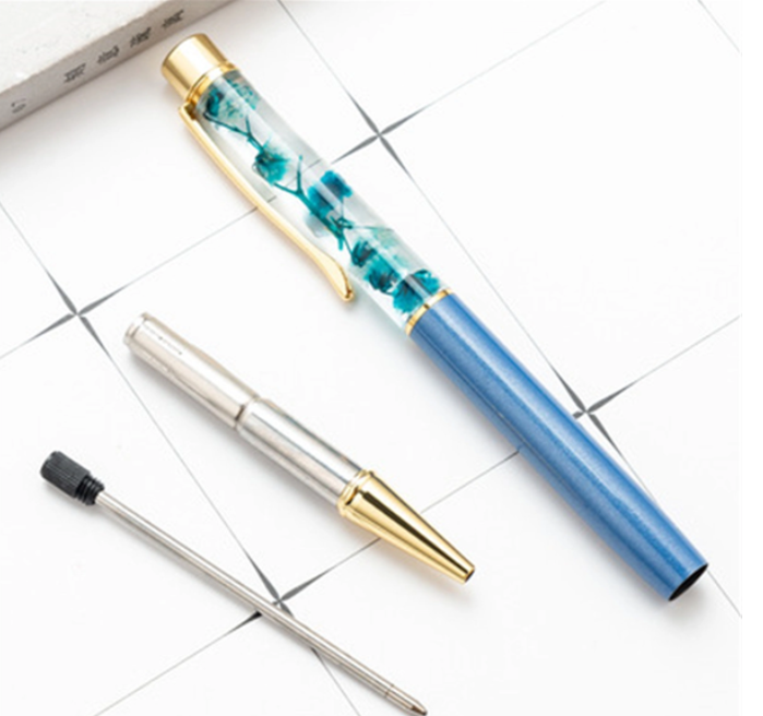 Elegancki długopis z pływającymi suszonymi kwiatami to połączenie funkcjonalności i wyjątkowego designu. Przezroczysta górna część wypełniona płynem tworzy efekt delikatnie unoszących się kwiatów, który przyciąga wzrok i nadaje produktowi luksusowy charakter.