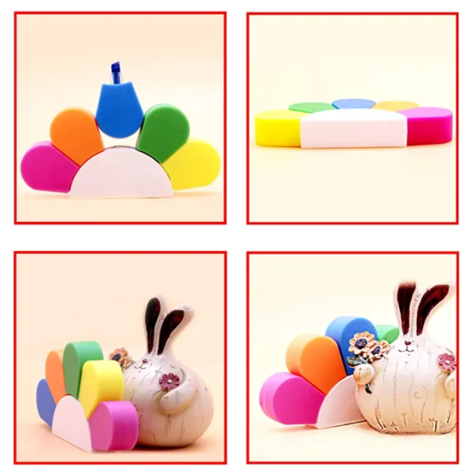 Kreatywny zakreślacz w kształcie kwiatu 5-w-1 to idealne połączenie funkcjonalności i zabawy. Jeden marker zawiera 5 intensywnych, fluorescencyjnych kolorów: różowy, pomarańczowy, żółty, zielony i niebieski – idealnych do nauki, pracy kreatywnej i organizacji notatek.